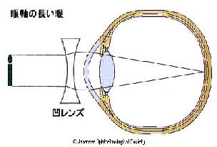 眼軸長の延長により、焦点自体の位置は変わらないため、網膜の前に焦点がきてしまい、