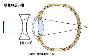 この状態になるとピントのずれのためにきちんとみえません。焦点を合わすために、凹レンズ
